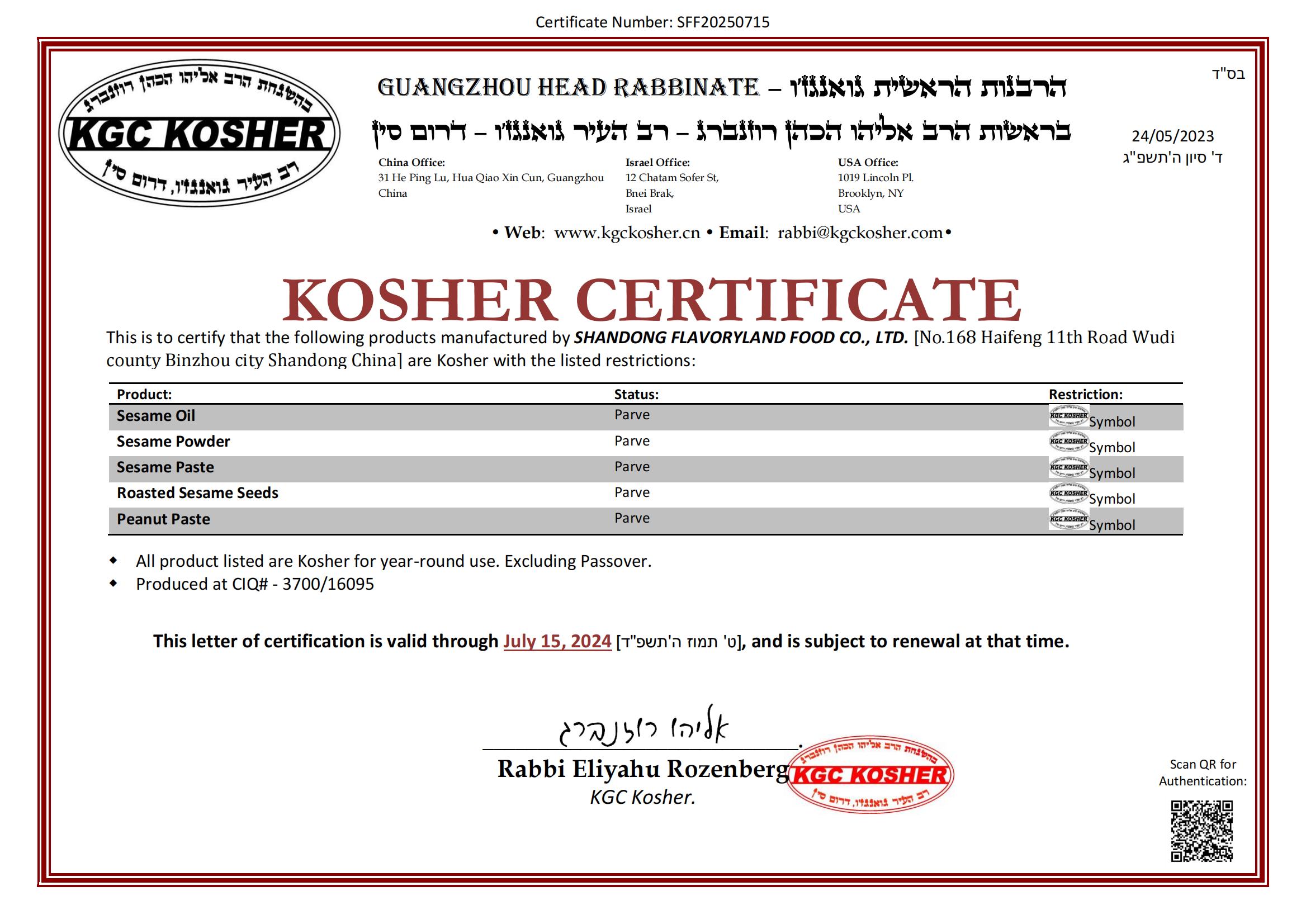 ? ? 豐香園小磨香油、芝麻調(diào)和油、花生醬、芝麻醬、混合醬、熟芝麻制品均已通過英國零售商協(xié)會(huì)BRC認(rèn)證、歐盟 美國和國內(nèi)有機(jī)、HACCP體系認(rèn)證,是山東省出口食品備案企業(yè)。